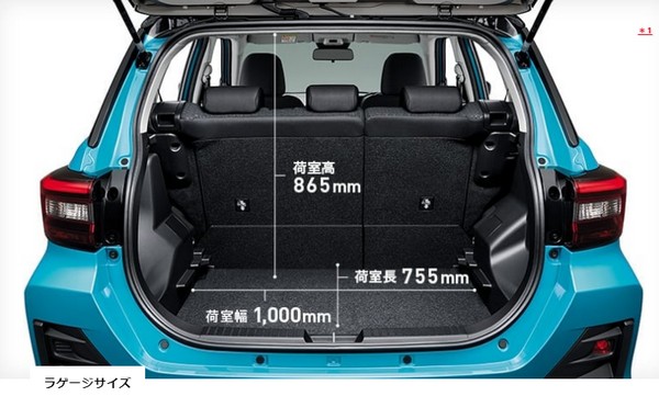 しかしライズの荷室長が755mmに対し、クロスビーは525mmですから、クロスビーの錦はかなり小さいことは推測できます。