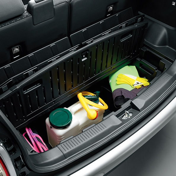 クロスビーのラゲッジ空間はどちらかというと狭いのですが、ラゲッジフロアを跳ね上げれば先ほど紹介した床下収納と一体的に使うことができるのです。