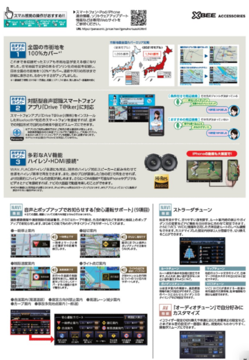 更に、このナビは対話型音声認識スマートフォンアプリ「Drive T@lker」に対応していますので、スマートフォンの音楽を聞けるだけでなくナビの目的検索も行えます。