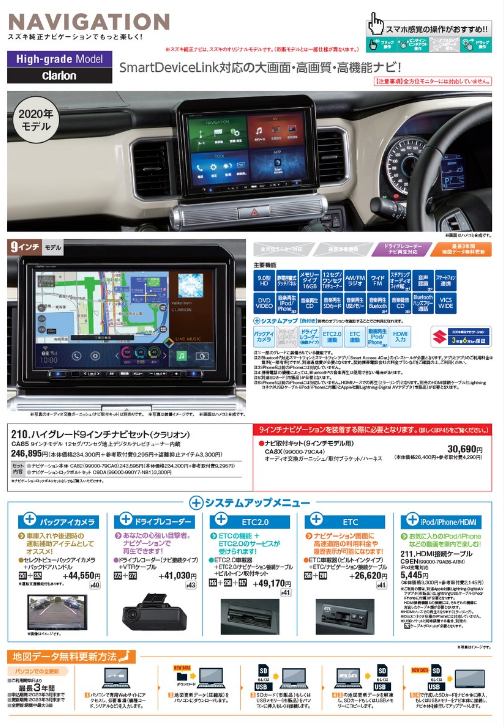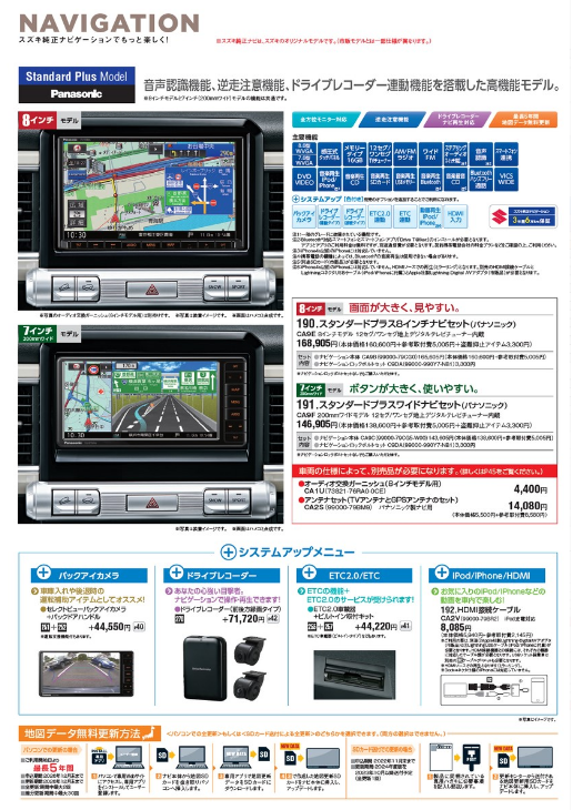 クラリオン製のナビで、このナビも市販モデルではなく、スズキオリジナルモデルとなっています。