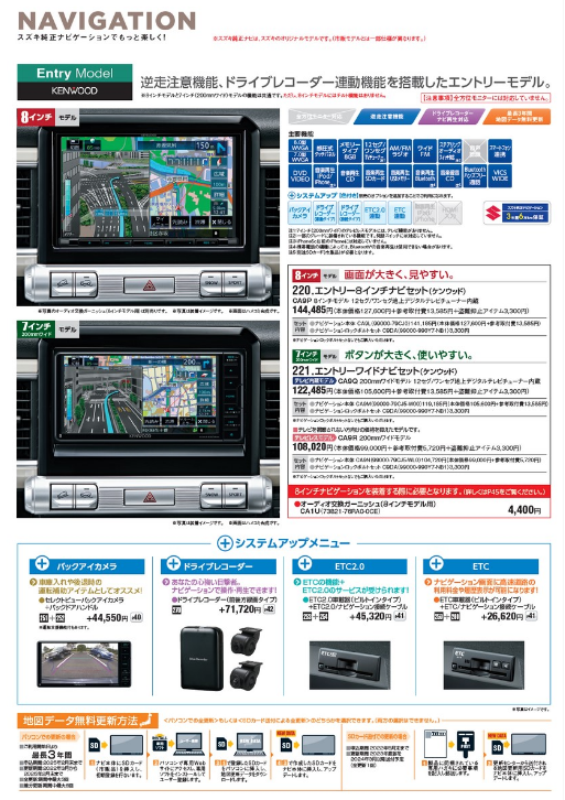 ケンウッド製ですが、このナビも市販モデルではなく、スズキオリジナルモデルとなっています。