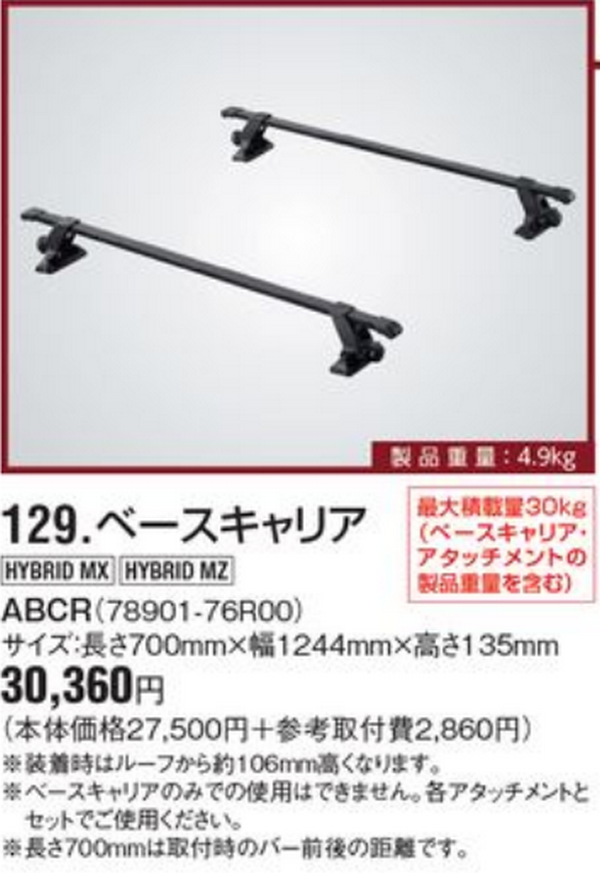 ルーフキャリアは土台の上にそのまま荷物を載せるものになります。